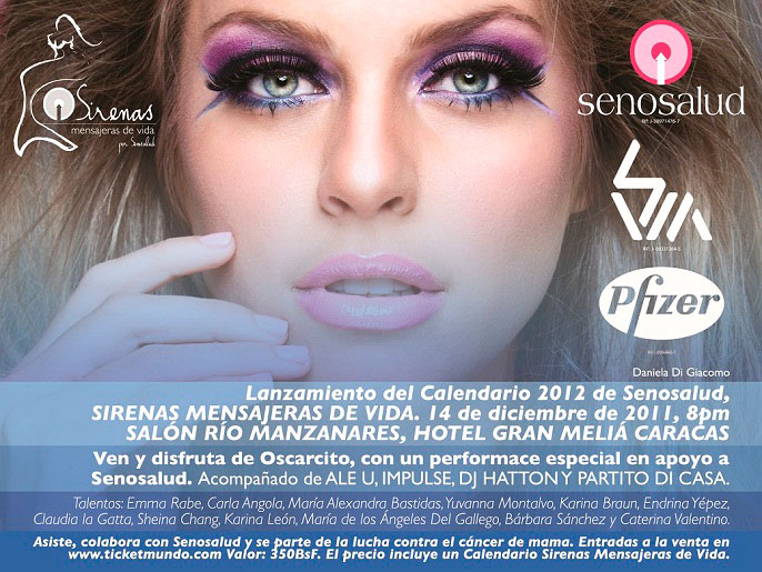 porque la vida es rosa», SENOSALUD lanza su nuevo calendario »Sirenas, mensajeras de vida 2012», que se presentará oficialmente el próximo 14 de diciembre en el Hotel Meliá Caracas con un desfile que causará impacto y conciencia en la población venezolana.