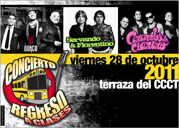 Servando y Florentino, Caramelos de Cianuro y Guaco se unirán en una misma tarima para interpretar sus más grandes éxitos en un espectáculo que ha sido denominado “Concierto Regreso a Clases” el cual estará bajo la producción de OP JR Group.