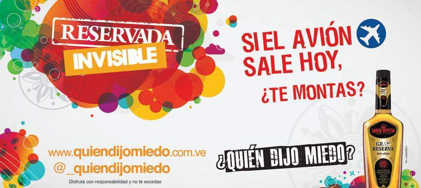 “El mismo día de la Reservada Invisible informaremos a todos los registrados en la página web de la campaña, el lugar y la hora del punto de encuentro para asistir a la fiesta, nuestros consumidores tienen que estar pilas, sólo tenemos 200 puestos y hay que llegar antes de que los aviones se llenen”, dijo Medina y añadió que sólo en el fan page de ¿Quién dijo miedo? en Facebook, ya Gran Reserva cuenta con más de 148.000 seguidores.