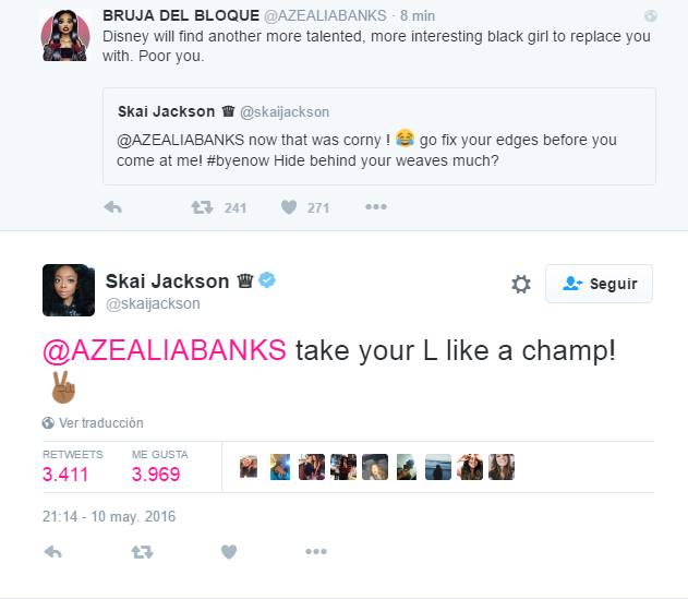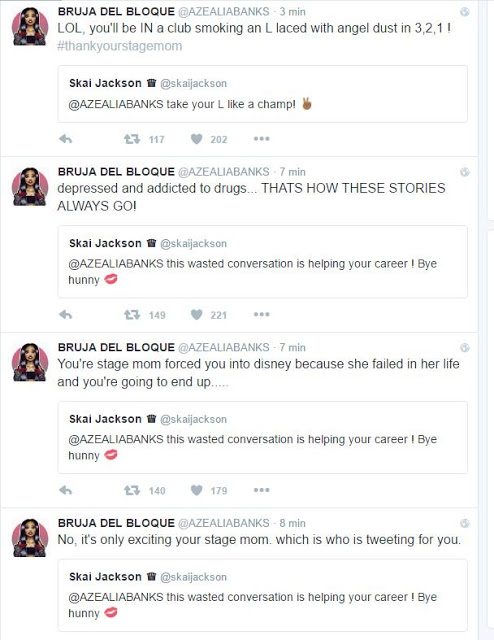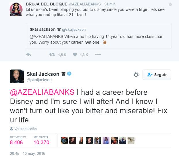 «lol tu mamá te ha estado vendiendo a Disney desde que eras una niña pequeña. Veamos como terminas cuando tengas 21. adios!» -Azaelia Banks