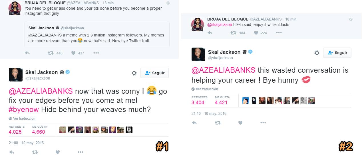 «Fuiste quemada por una directioner que tan miserable puede ser tu vida? Ahora toma varios asientos Azealia Apestas» -Skai Jackson Link del tuit