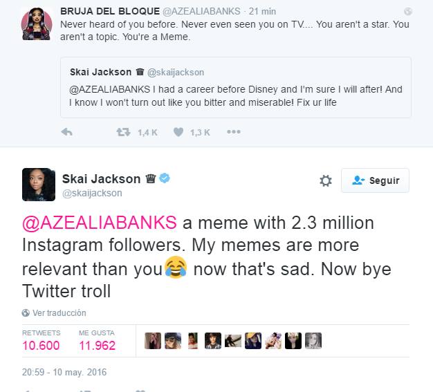 La pequeña Skai Jackson, de solo 14 años de edad, conocida por su participación en la famosa serie de Disney «Jessie», comenzó una discusión en twitter con la rapera Azaelia Banks.