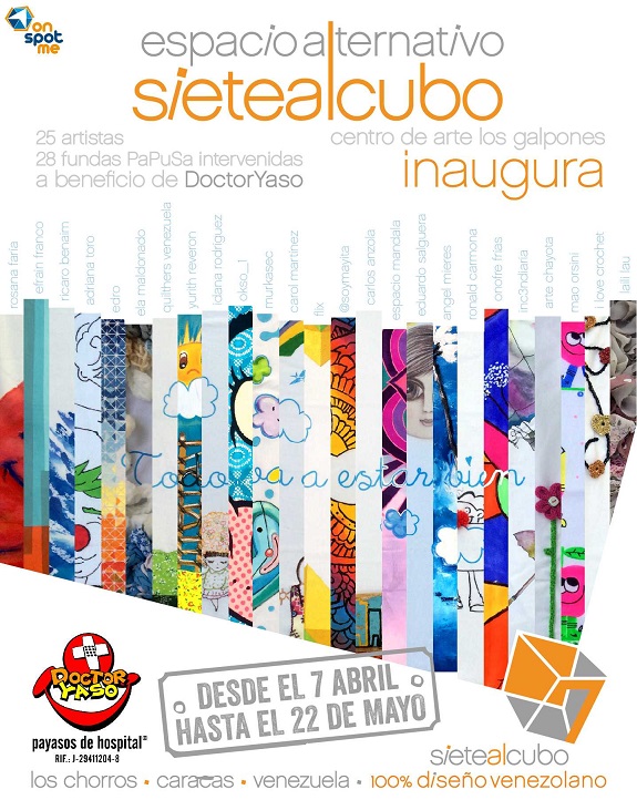 Doctor Yaso Payasos de Hospital y la tienda de diseño venezolano Siete al Cubo han organizado en conjunto la celebración del Mes de la Salud en el marco de la exposición Sonríe, todo va a estar bien: una muestra de 28 fundas Papusa intervenidas por 25 artistas venezolanos, que están expuestas desde el 7 de abril y serán subastadas el domingo 15 de mayo, con Clementina Mendoza en el rol de martillo.
