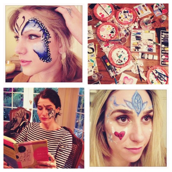 Una bella mariposa azul decoró la mejilla derecha de Taylor Swift, mientras que su amiga se convirtió en unicornio, y otra tuvo un unicornio en el rostro.