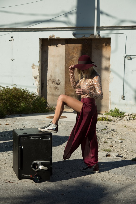La socialité venezolana Alegria Beracasa se viste de Nabel Martins, en una sesión de fotos Street Style, luciendo una diversidad de piezas que se acoplan a su personalidad. Se crearon looks partiendo de las prendas NM como protagonista y en muchos casos se fueron combinando con las prendas básicas del día a día, como calzado, sombrero y top.