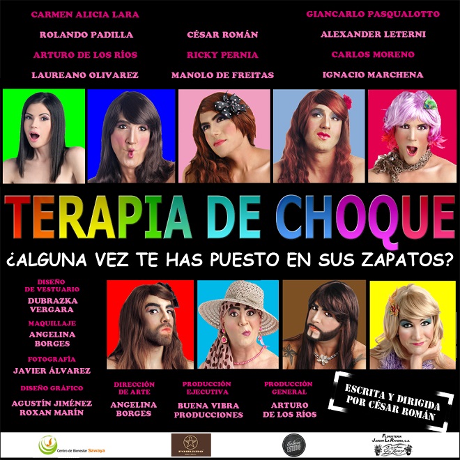 La realidad de muchos se verá reflejada cargada de “buena vibra” e inteligente humor, en la argumentativa comedia teatral Terapia de Choque del género Café Concert, donde se reúnen reconocidas figuras del mundo artístico como: Carmen Alicia Lara, Rolando Padilla, Arturo de Los Ríos, Laureano Olivarez , César Román, Ricky Pernia, Manolo de Freitas, Giancarlo Pasqualotto, Alexander Leterni, Guillermo Suarez, Carlos Moreno e Ignacio Marchena, para interactuar amena y cercanamente con el público, cómplice principal del desarrollo de la pieza.
