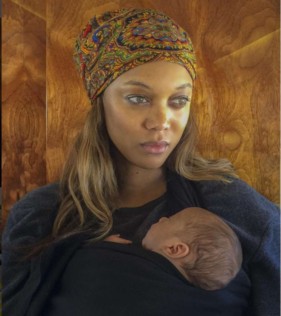 Tyra Banks , encantada con su estrenada maternidad vía gestacional , ha querido que sus fans conocieran al bebé publicando una instantánea de ella misma, sin maquillaje y con un pañuelo en la cabeza, sujetando a su pequeño.