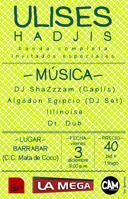 El próximo viernes 3 de diciembre regresa a Caracas el cantautor: Ulises Hadjis, en esta oportunidad acompañado de banda e invitados especiales. Ulises Hadjis fue el baterista del emblemático quinteto de