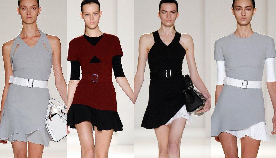 Su nueva propuesta -como prácticamente todas las vistas en la pasarela este año- se vio dominada por el negro y el blanco, pero con un toque de fucsia y burdeos en algunos modelos.