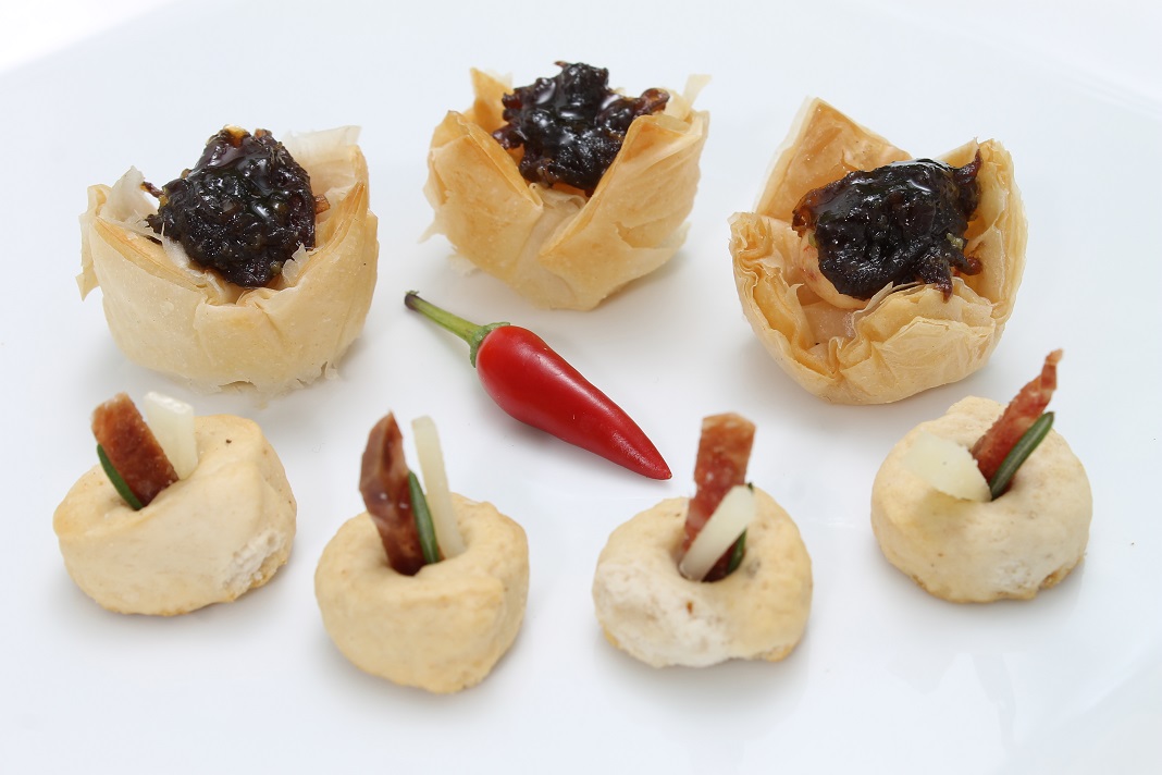 Para dar una idea de estas preparaciones entre los cientos de pasapalos del menú destacan el Ceviche de mero con mango y parchita; el Bocado de queso de cabra y tomate seco con cebolla caramelizada; Dados de emmental con mermelada de Oporto, así como los Mini bollos pelones de asado negro.