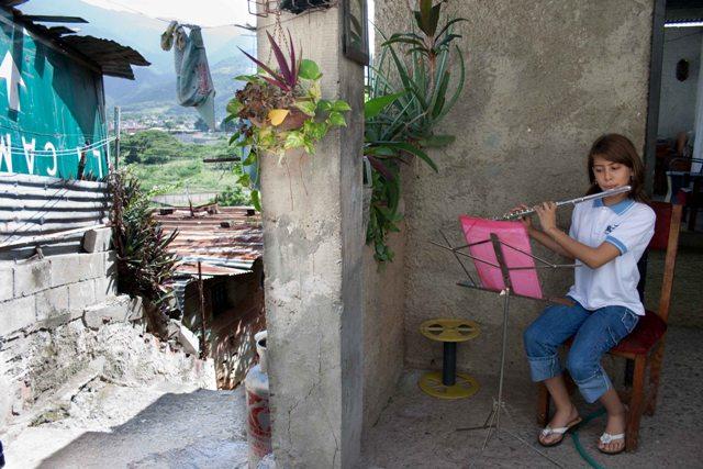El título de la fotografía que le dio el premio a Pereira es “La música espanta la pobreza”; en ella se ve a una joven que forma parte del Sistema de orquestas juveniles creado por el maestro José Antonio Abreu, está practicando la flauta en la puerta de su casa.