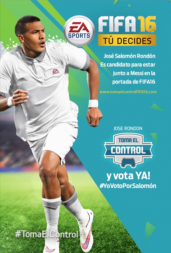 Ingresando a (tomaelcontrolFIFA16.com) y votar por Salomón Rondón, sólo se logrará que el jugador de la vinotinto pueda ser la portada de #FIFA16.Así pues, a través de #YOVOTOPORSALOMON en tomaelcontrolFIFA16.com podrás ser parte del éxito para que Salomón Rondón acompañe a Messi en la portada #FIFA16 #TOMAELCONTROL