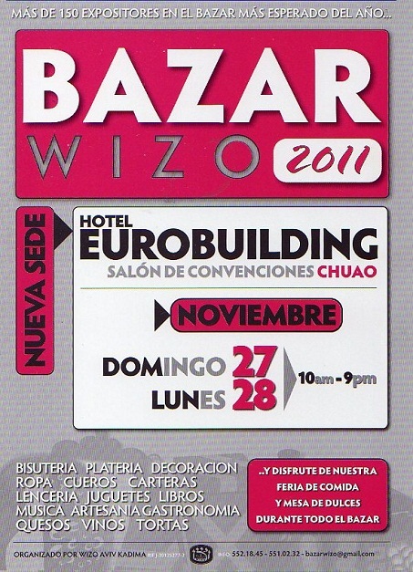 EL BAZAR WIZO se realizará el Domingo 27 y Lunes 28 de Noviembre 2011 de 10 a.m. a 9 p.m.