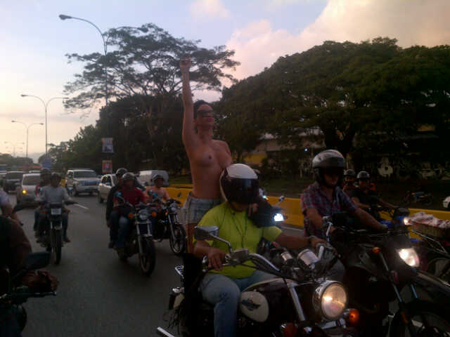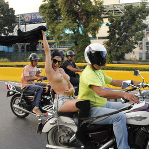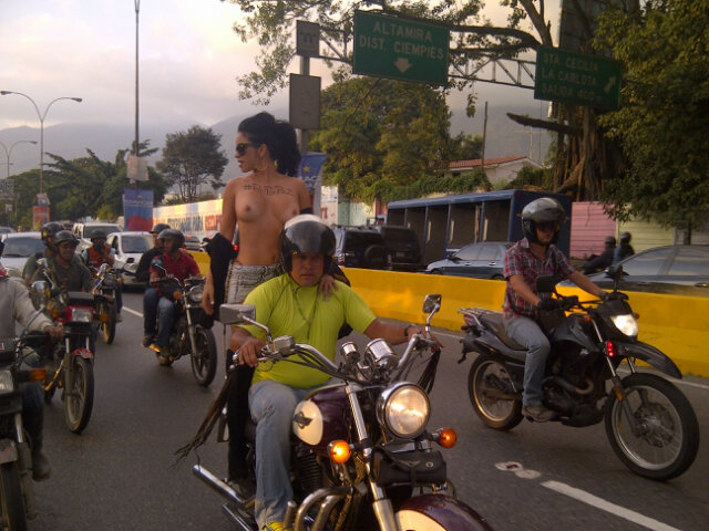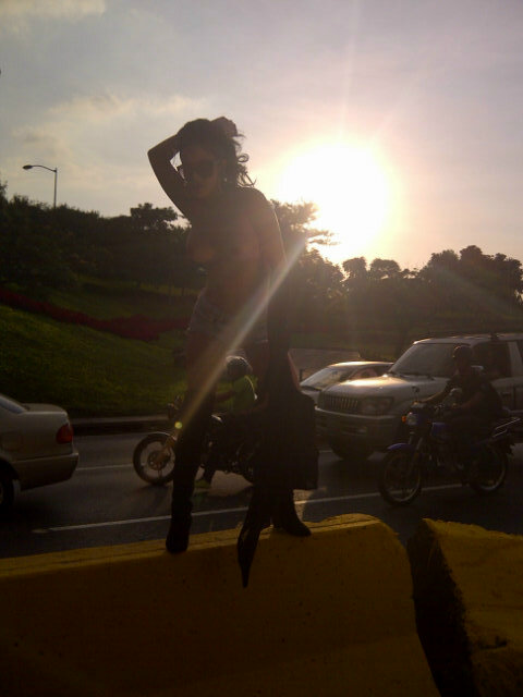 La espectacular modelo y Vedette venezolanase junto con unos amigos y se fué en moto por Caracas y se desnudó tomandose