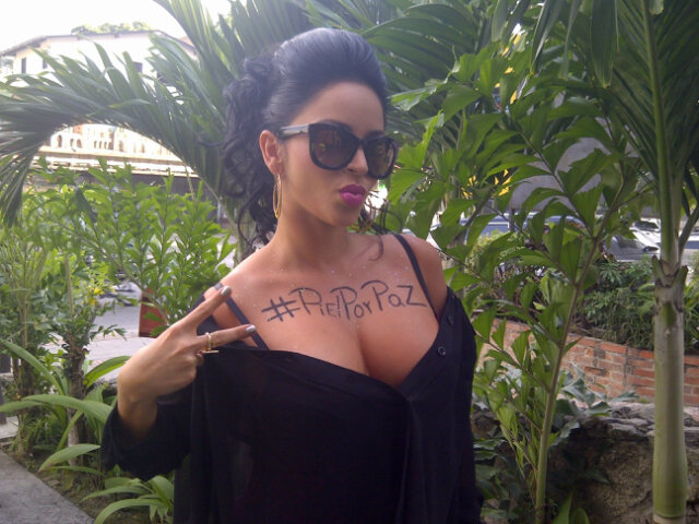 fotos en sitios emblematicos de nuestra capital, en el inicio de su campaña #PielPorPaz, Con un lema que dice: «Basta de violencia basta de mis panas muertos Basta señores el cambio esta en nosotros!»